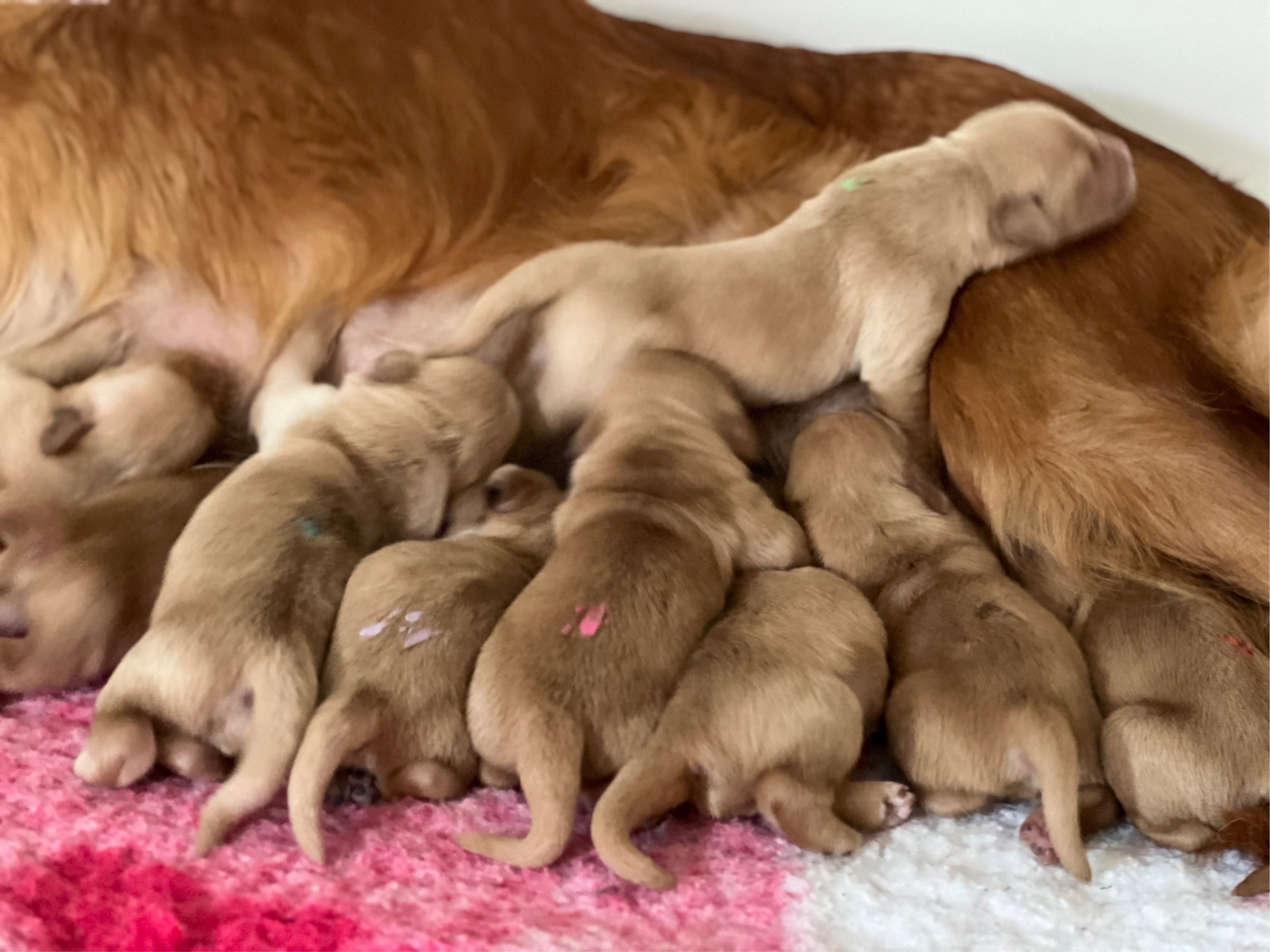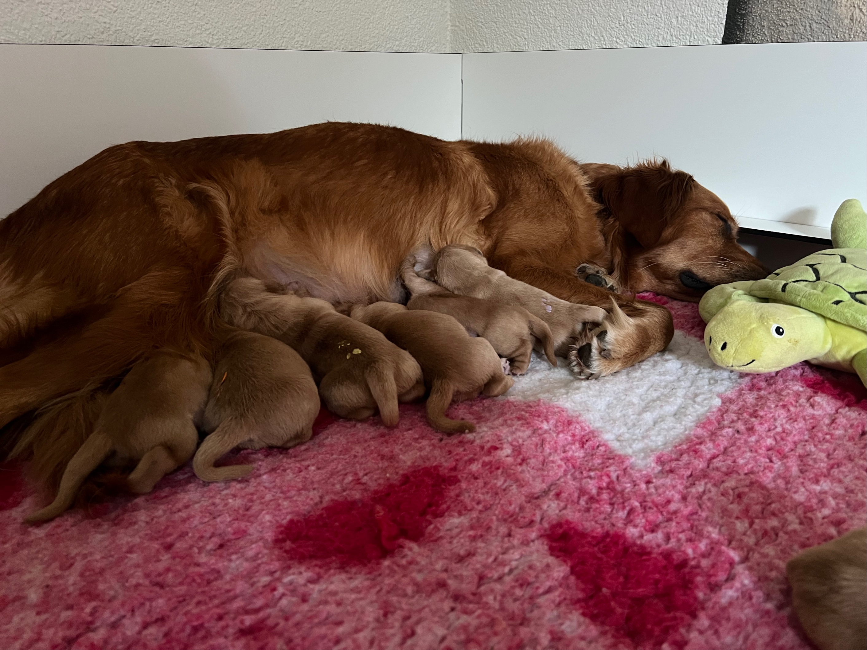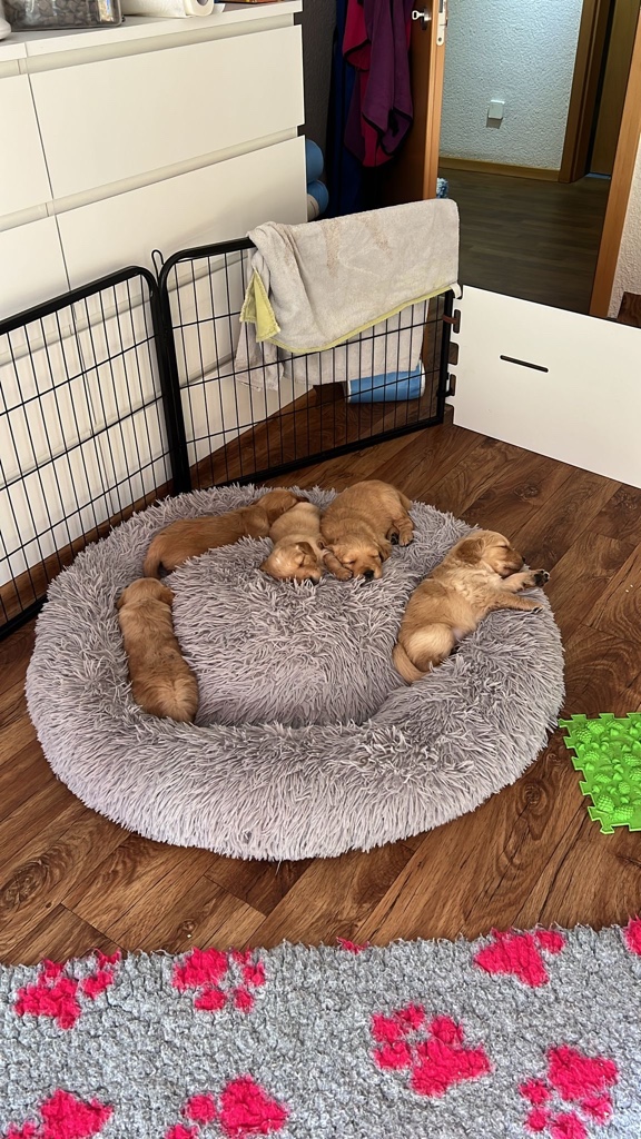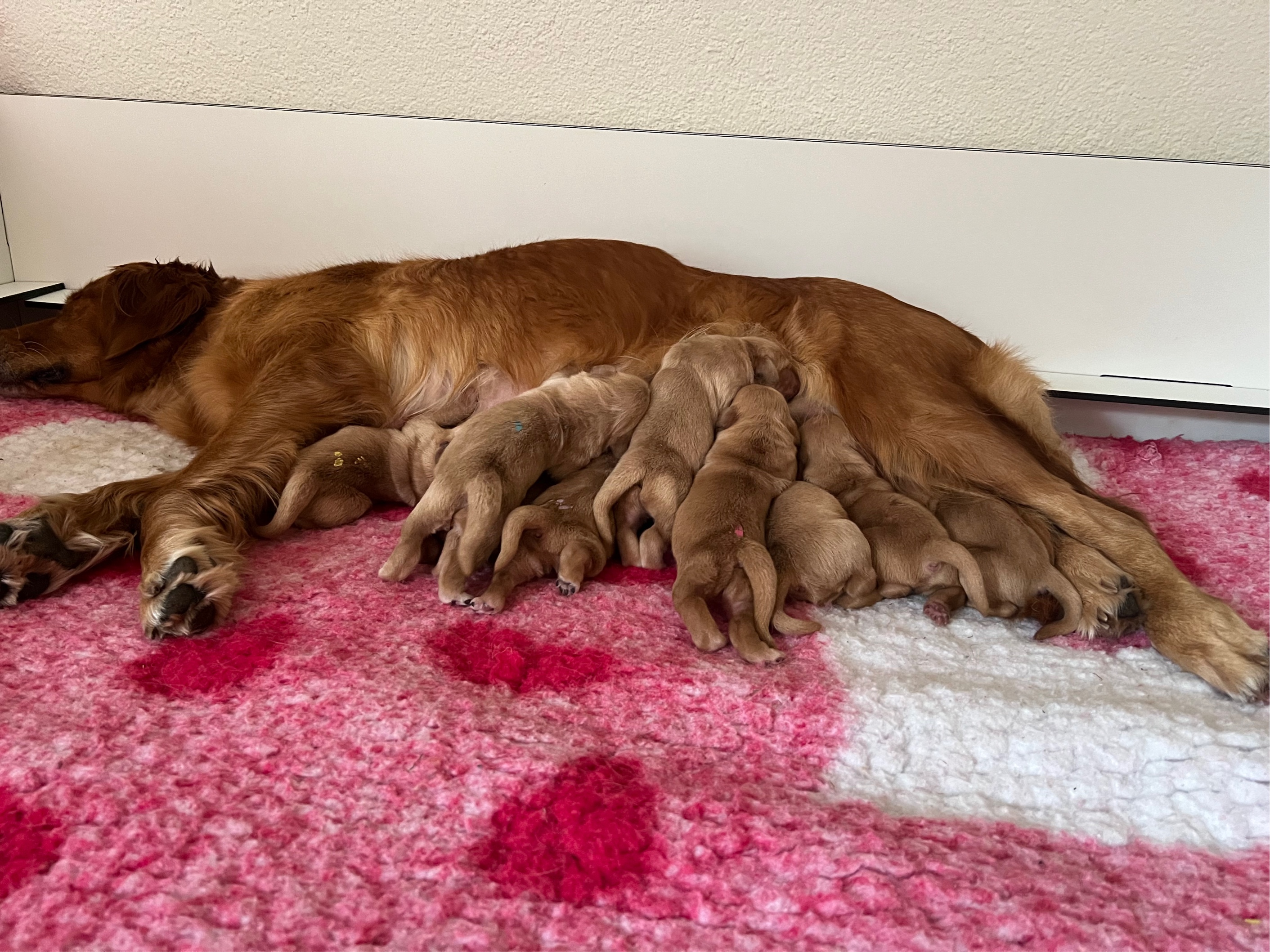 - Um 5.55 Uhr ist der letzte Welpe geboren, es sind 5 Mädels und 4 Buben