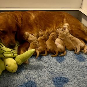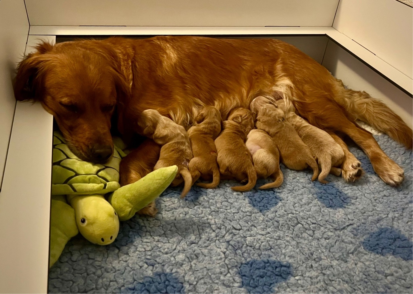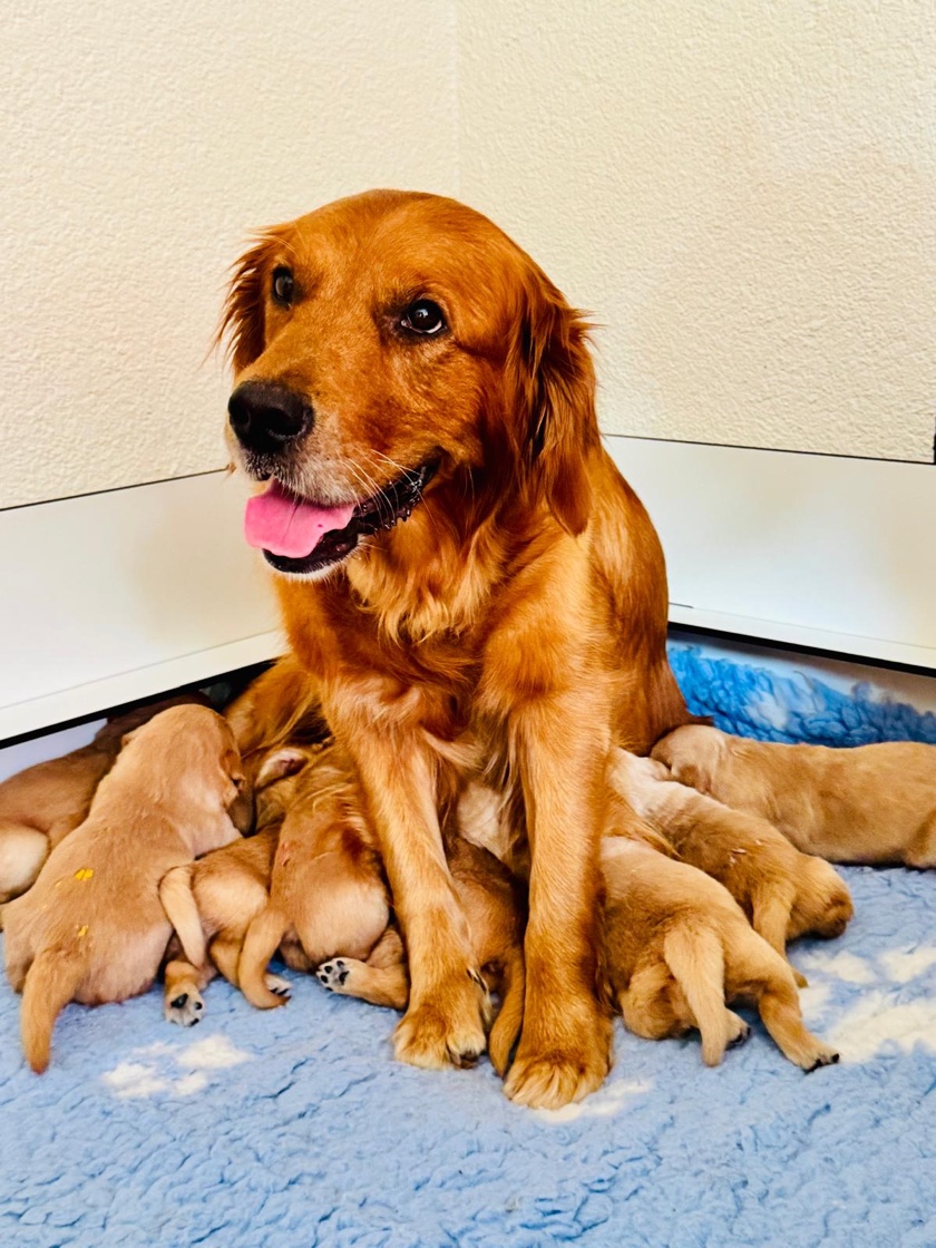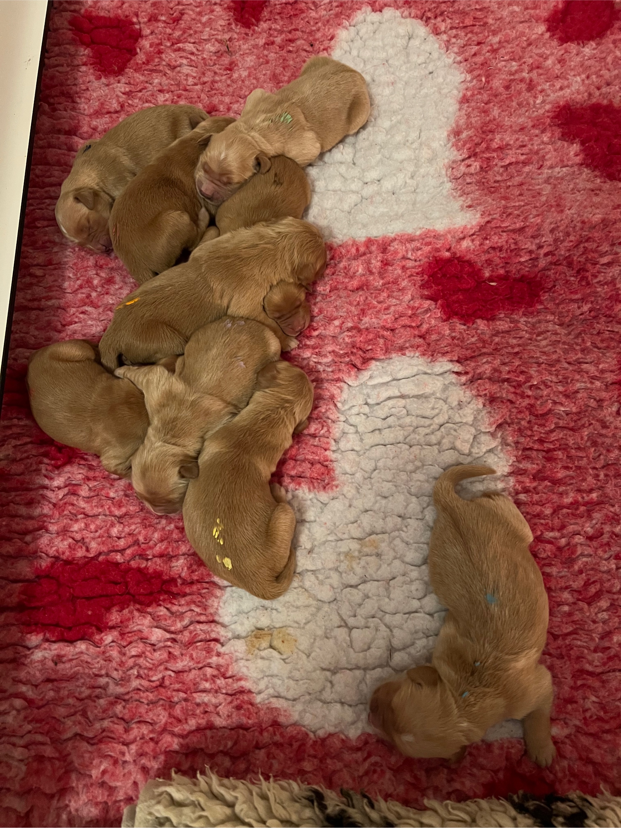 - Um 5.55 Uhr ist der letzte Welpe geboren, es sind 5 Mädels und 4 Buben